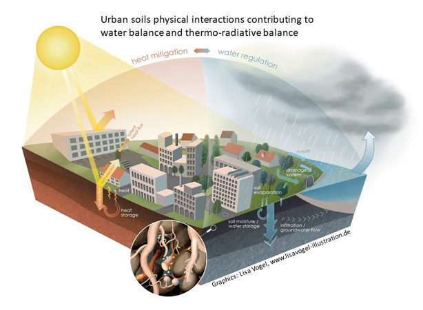 La moitié de la population mondiale réside actuellement en ville, où la température est généralement plus élevée que dans les zones rurales environnantes. Il en résulte une modification du climat local dans lequel les sols jouent un rôle essentiel, souvent sous-estimé. Notre projet de recherche vise à mieux comprendre comment les sols urbains favorisent la régulation de l'eau et des îlots de chaleur.